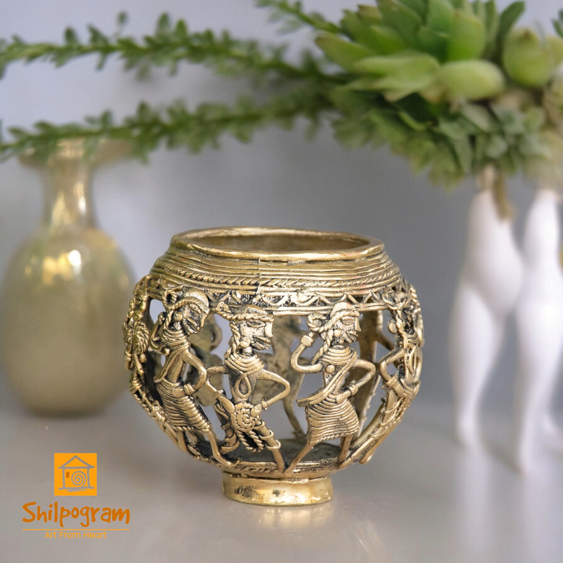 Dhokra Art Brass Metal Handcrafted Pen Stand || D67