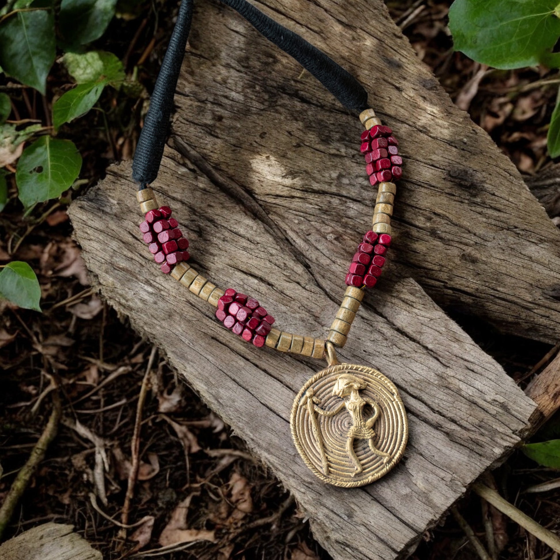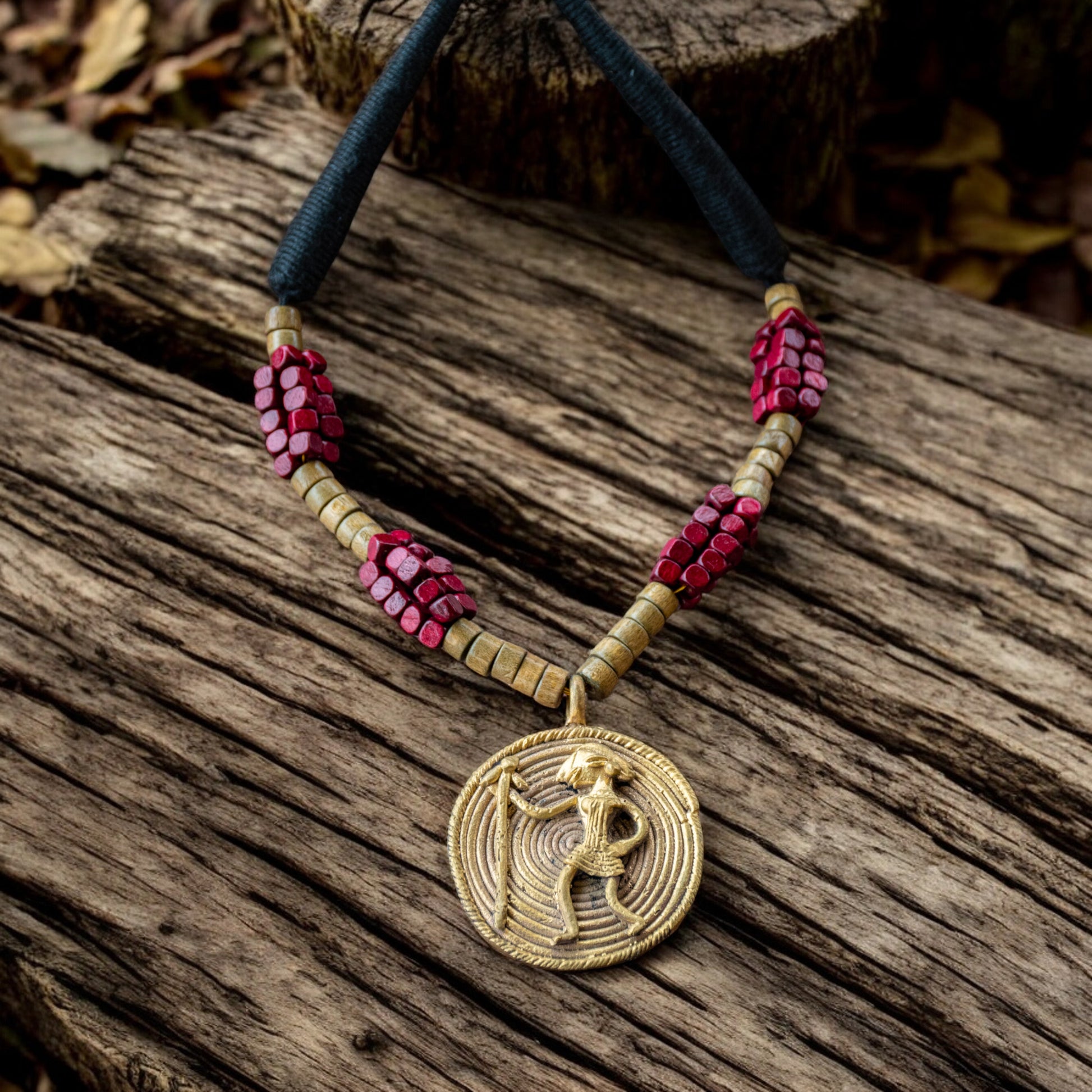Crafted with precision and intricate details, our Dhokra Art Brass Metal Jewellery for Women features stunning wooden beads that add a touch of elegance. Handmade by skilled artisans, this unique piece showcases traditional craftsmanship and is sure to elevate any outfit.