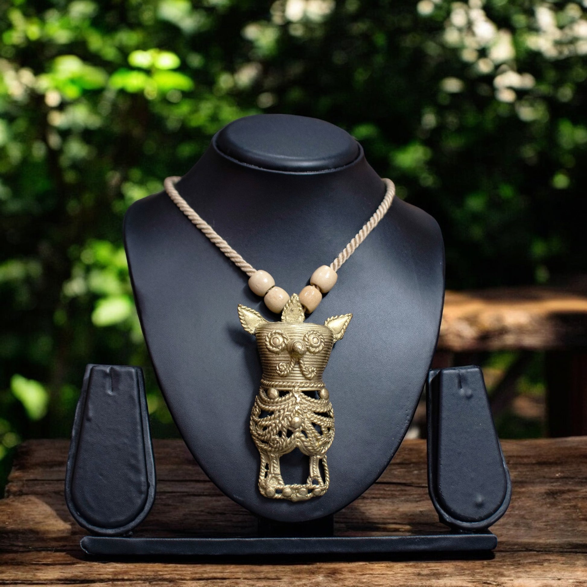 Discover a unique blend of traditional and contemporary design with our Dhokra Art Brass Metal Jewellery set for Women. Handcrafted by skilled artisans, this stunning owl design features intricate details and a vibrant cotton thrade tassle. Add a touch of sophistication and culture to any outfit.