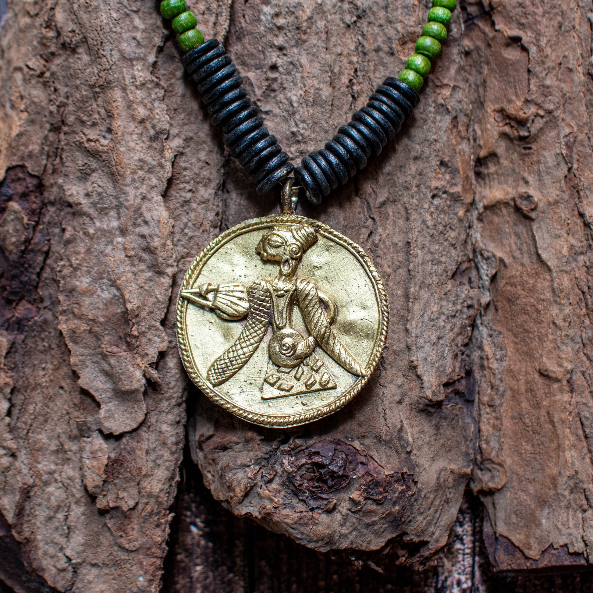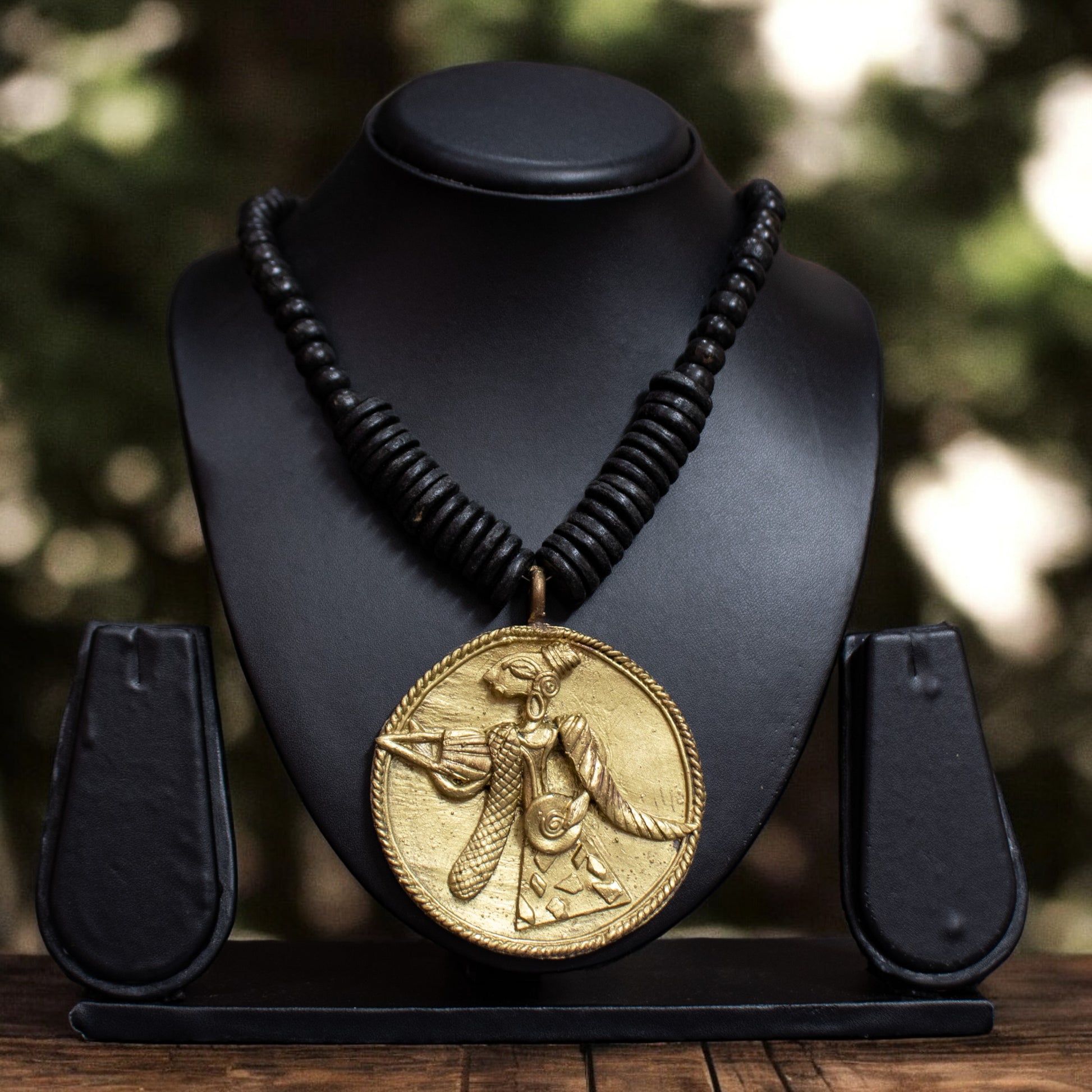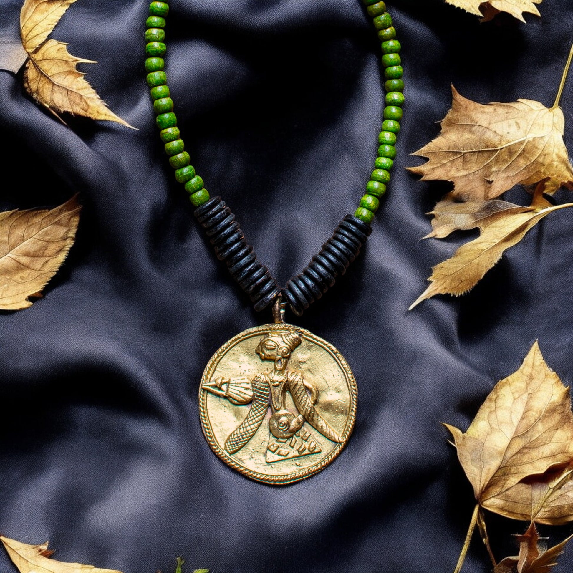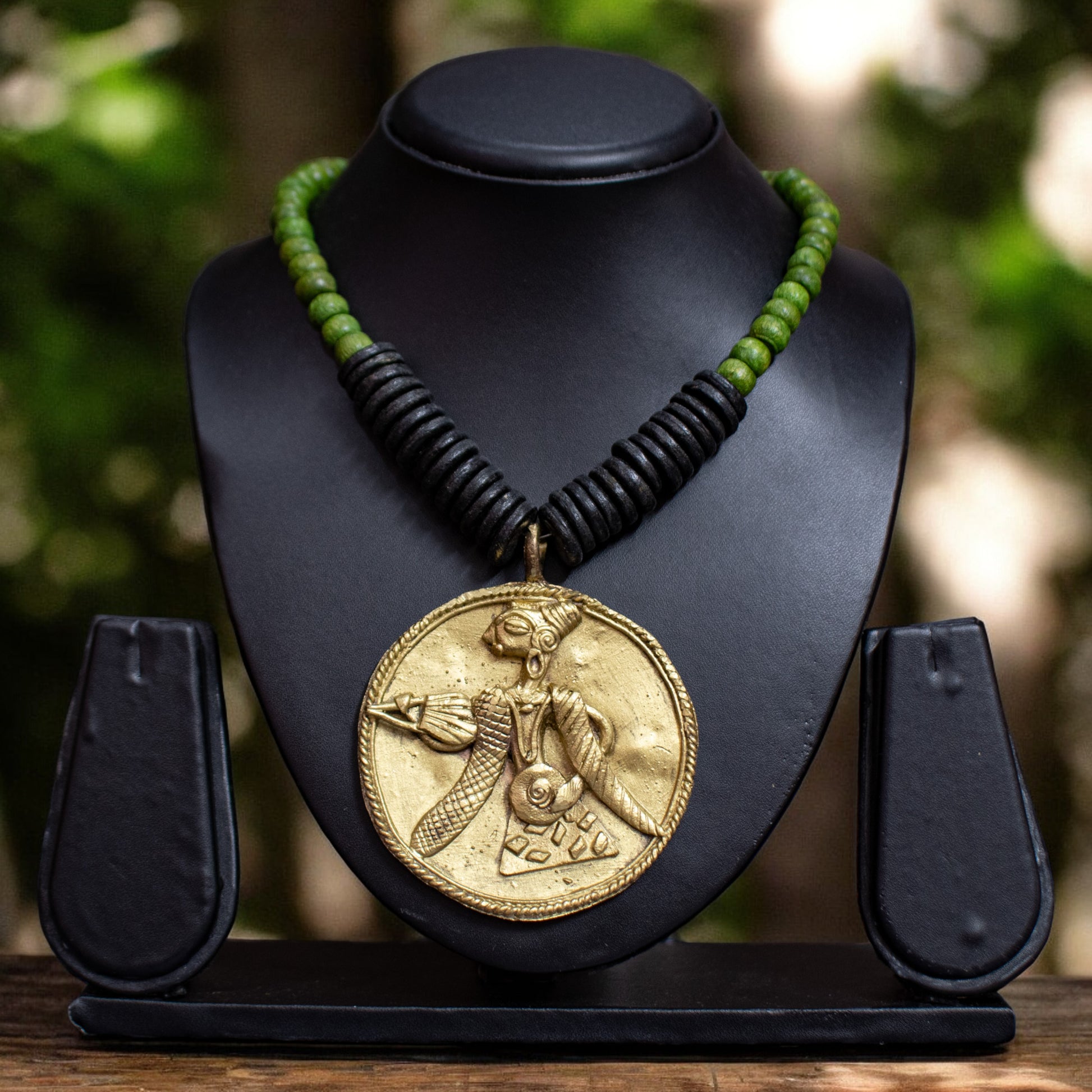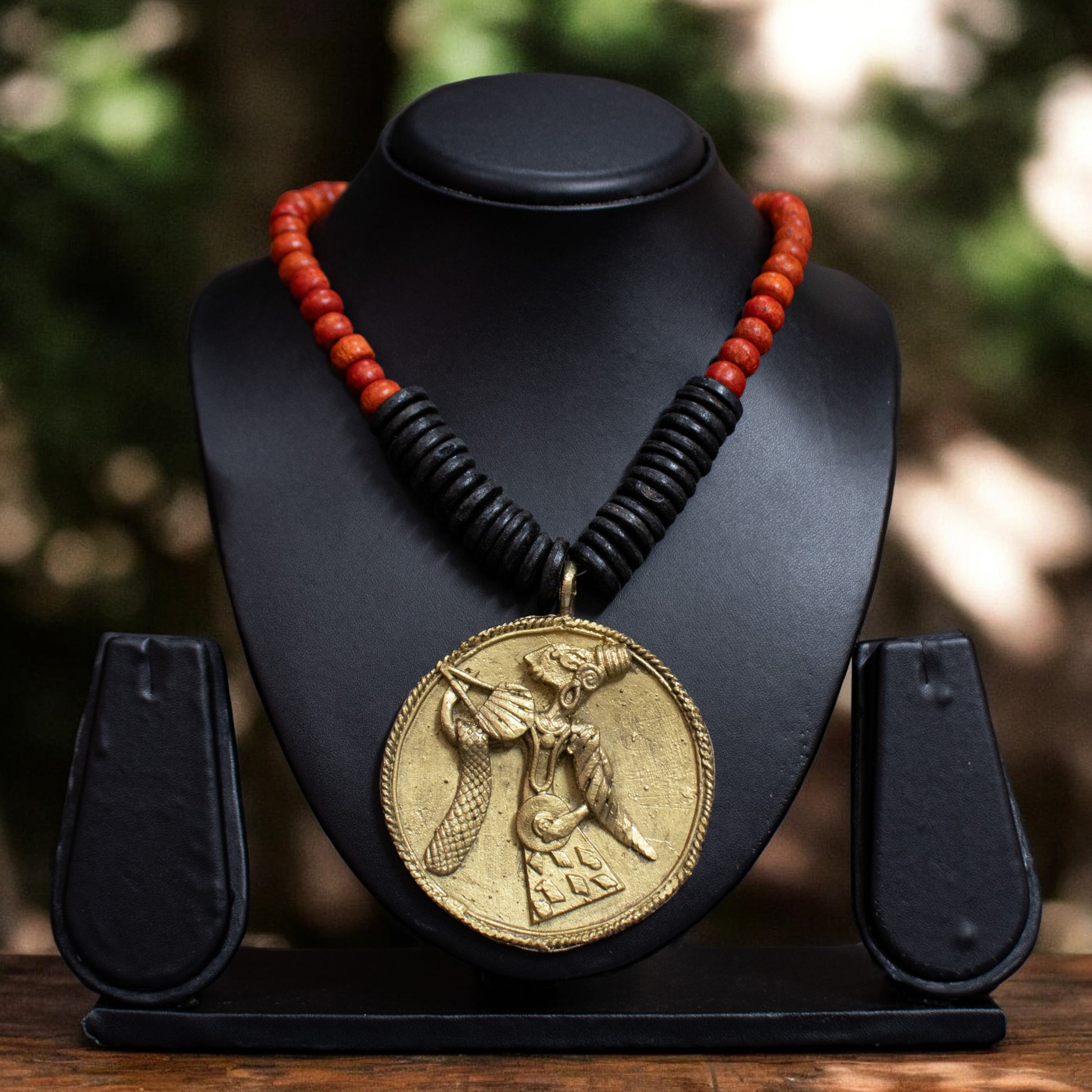 Discover the beauty and elegance of Dhokra Art with this exquisite brass metal baul adorned with colorful wooden beads. Handcrafted by skilled artisans, this jewellery piece is perfect for women who appreciate unique and traditional designs. Enhance your style with the charm of Dhokra Art.