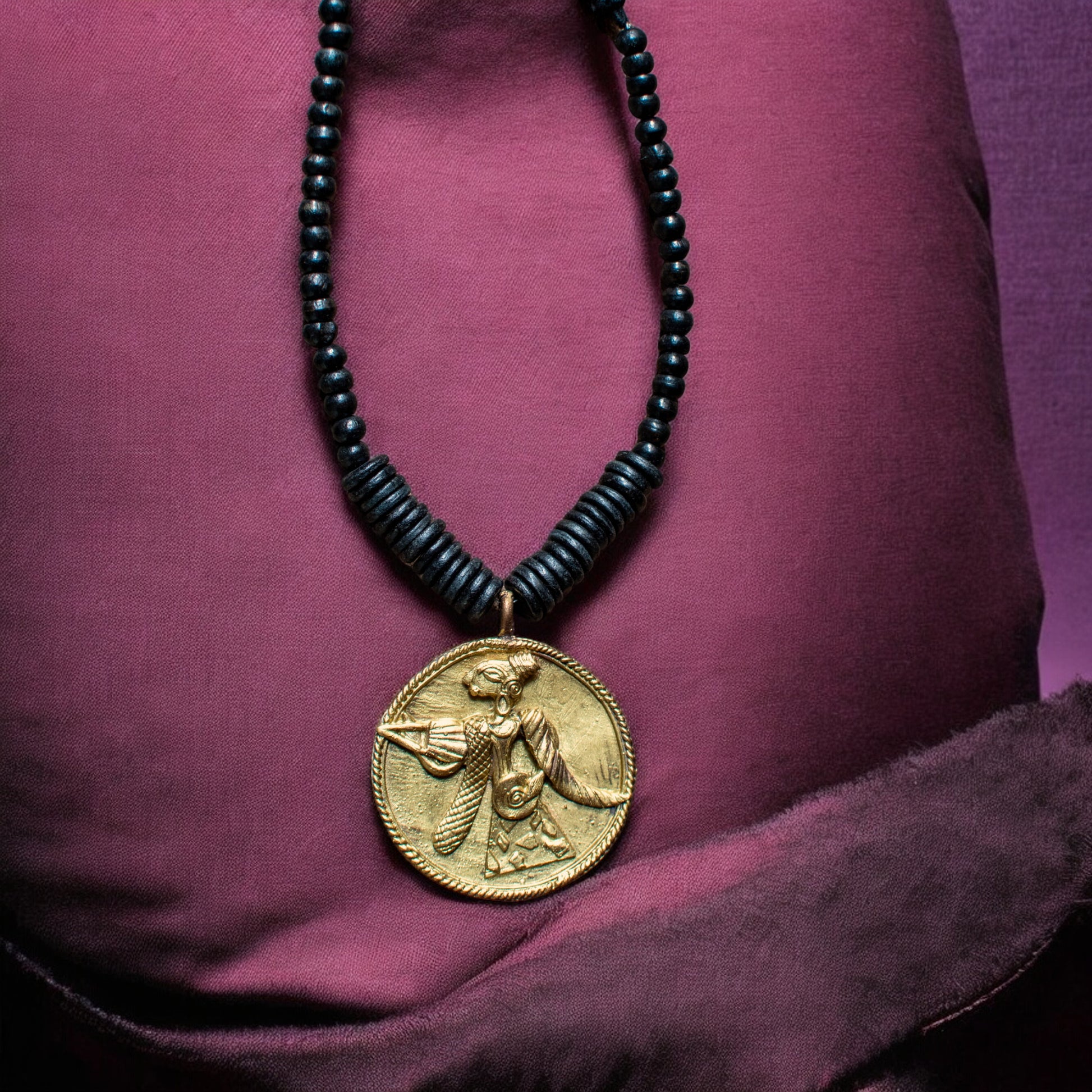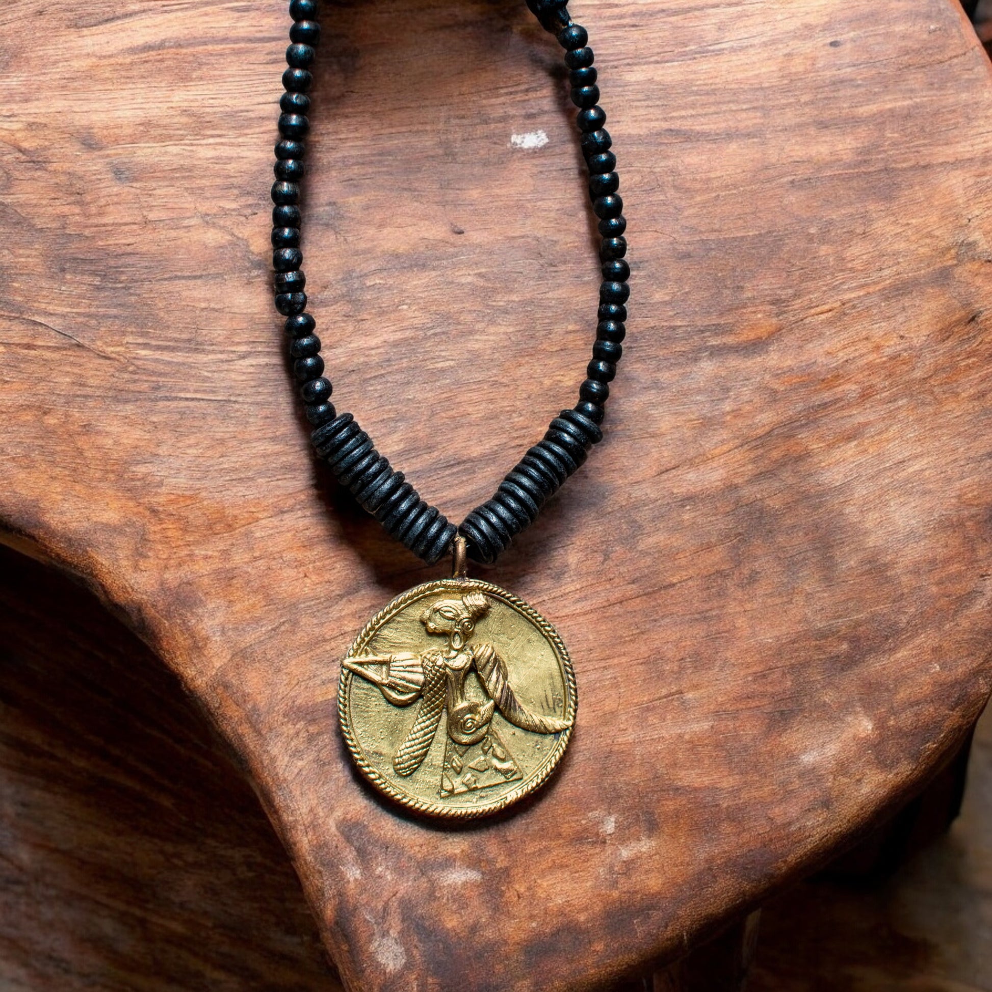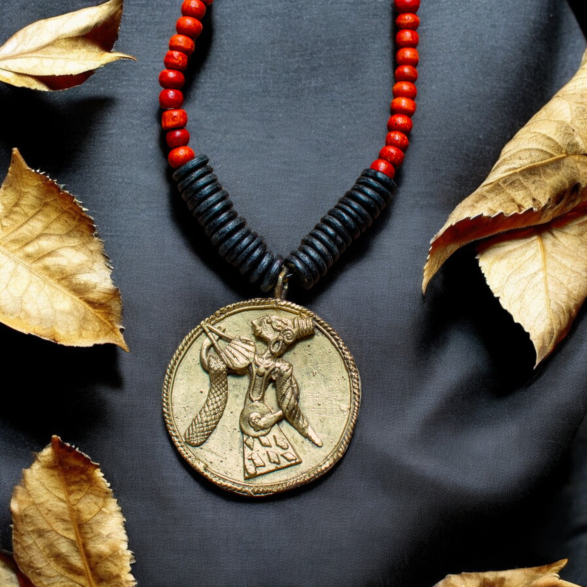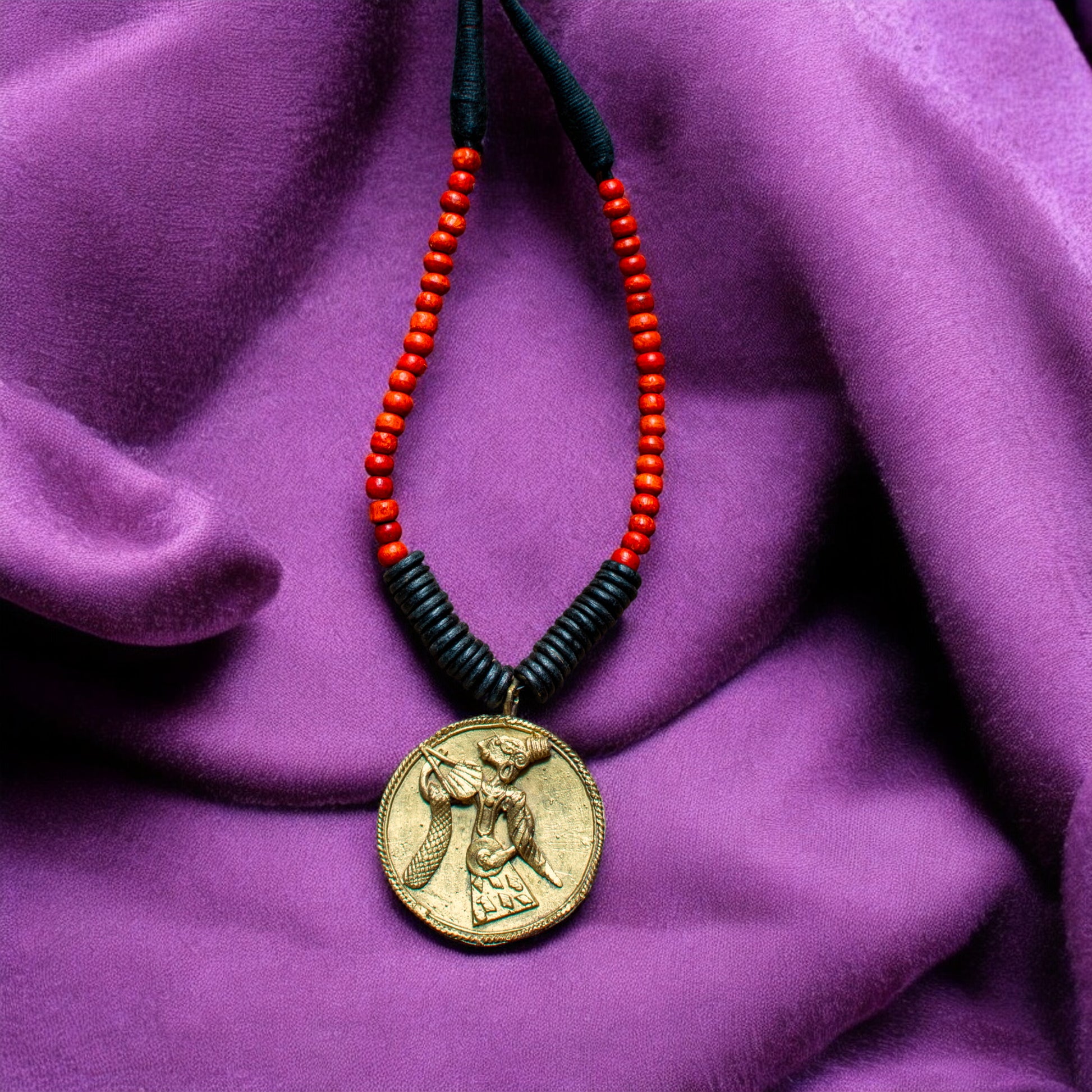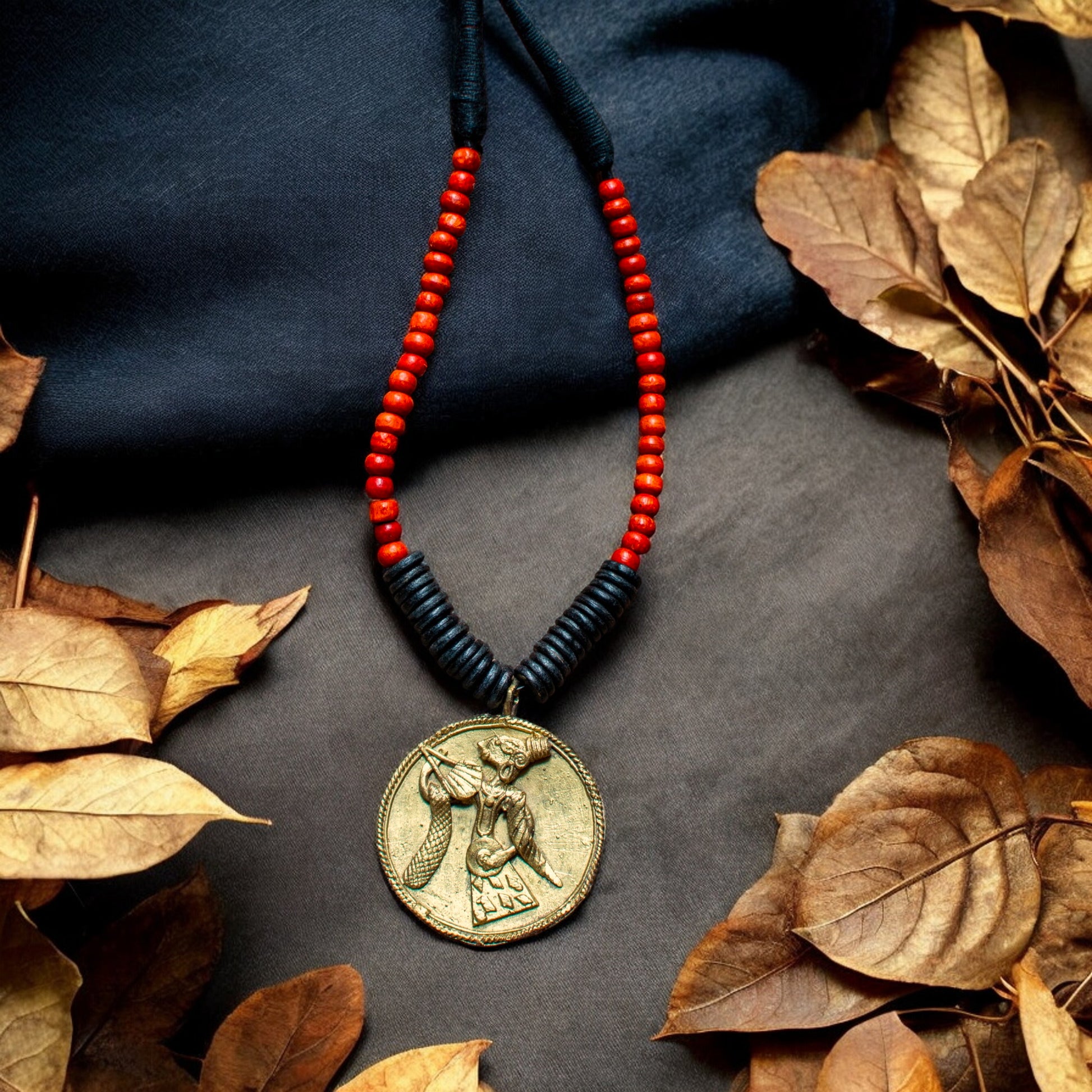 Discover the beauty and elegance of Dhokra Art with this exquisite brass metal baul adorned with colorful wooden beads. Handcrafted by skilled artisans, this jewellery piece is perfect for women who appreciate unique and traditional designs. Enhance your style with the charm of Dhokra Art.