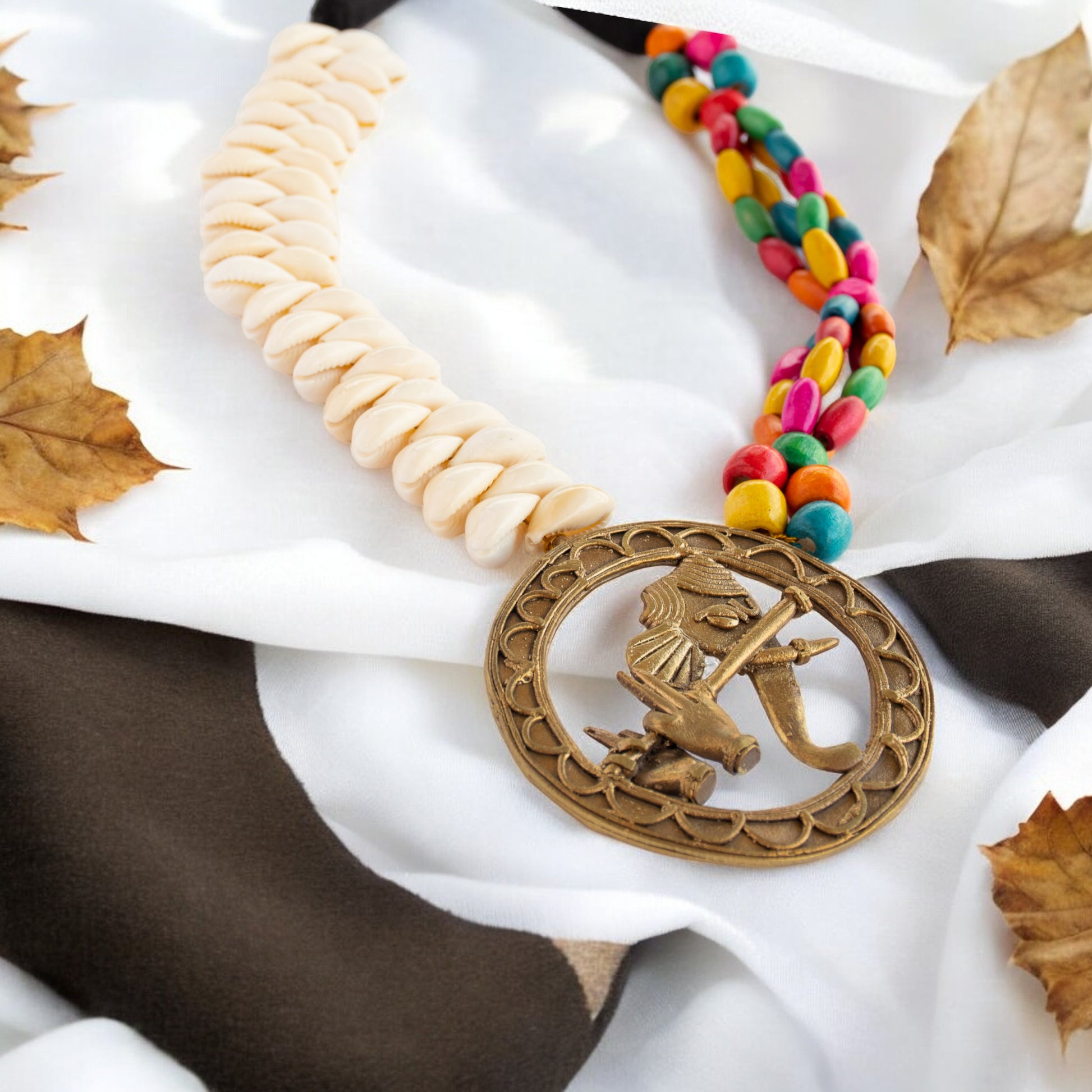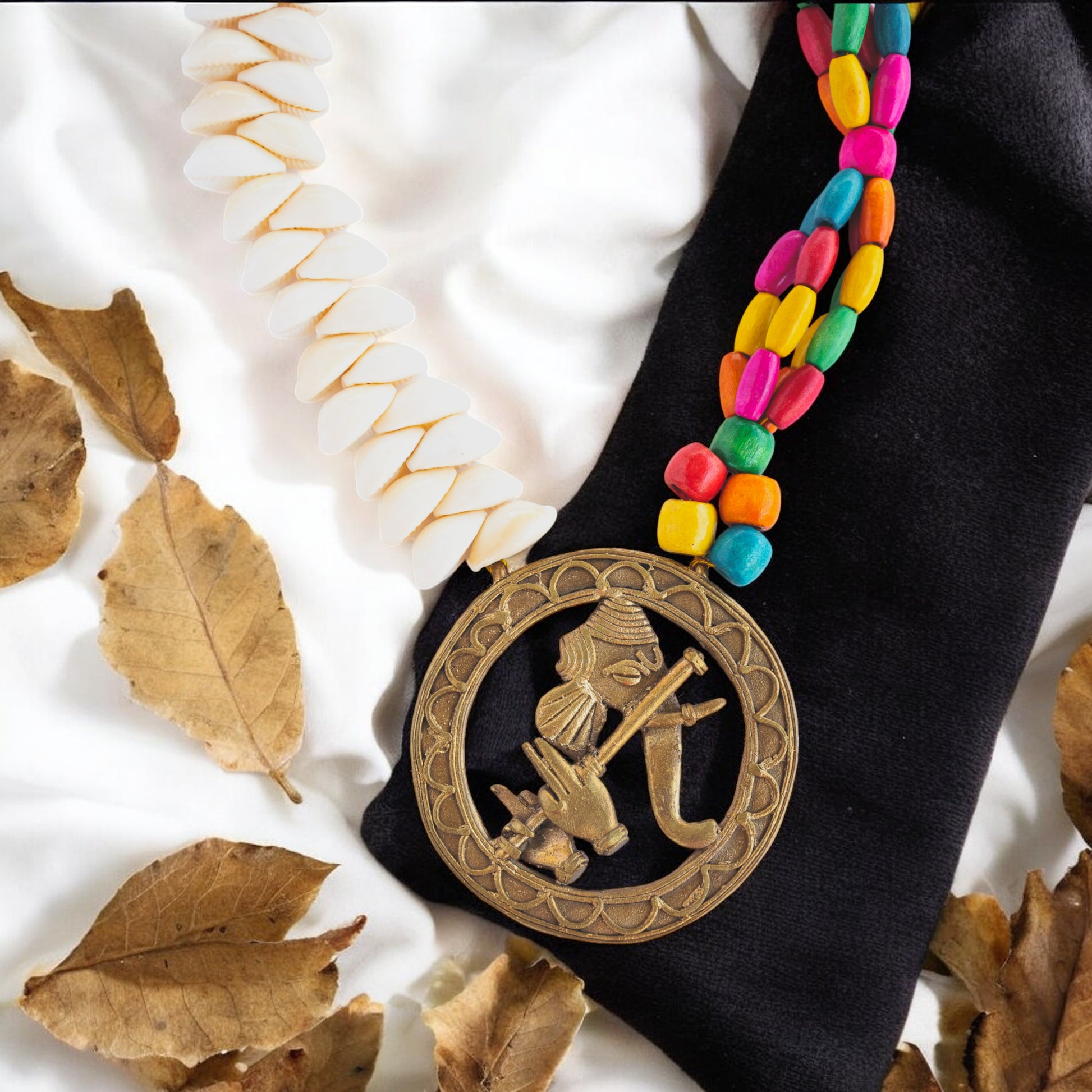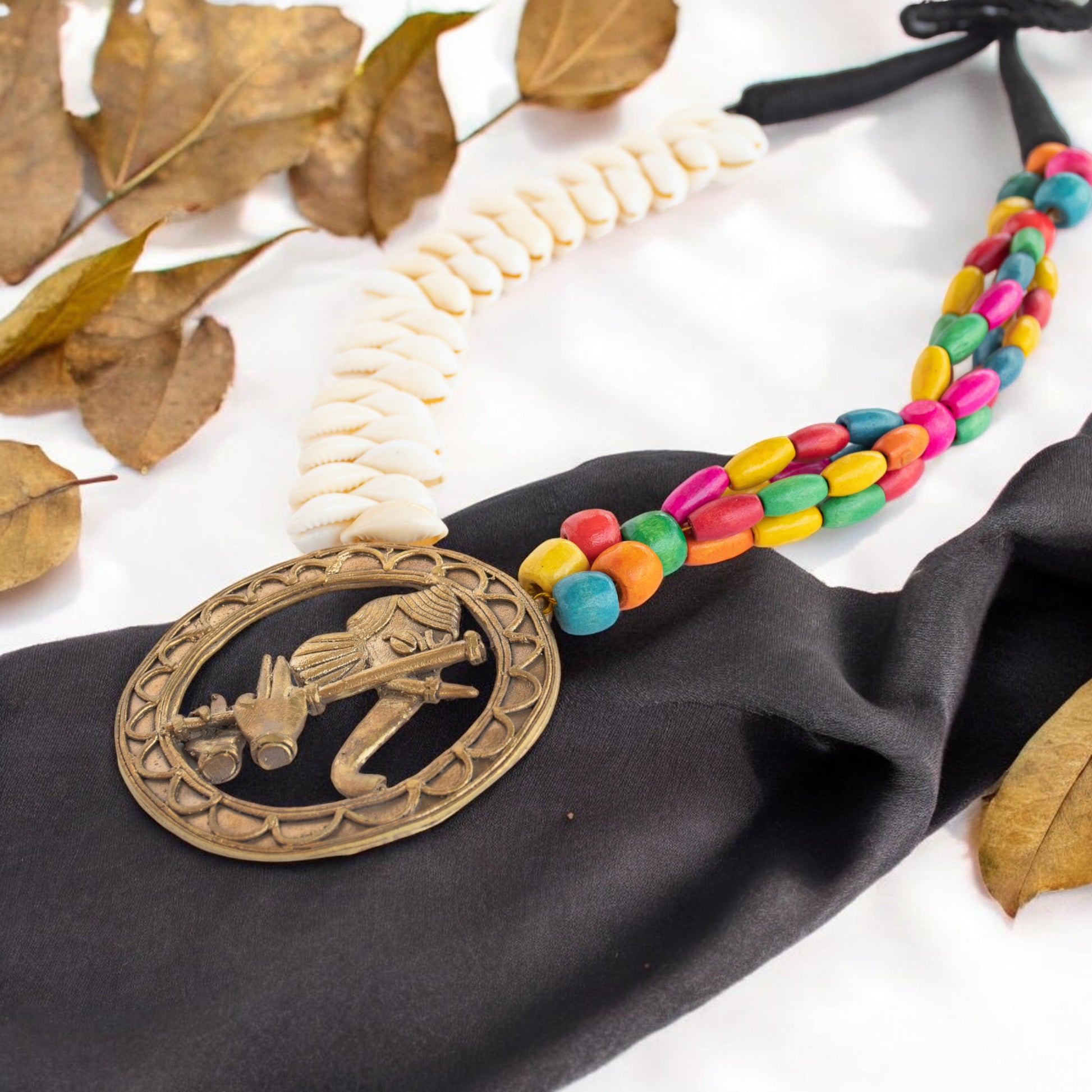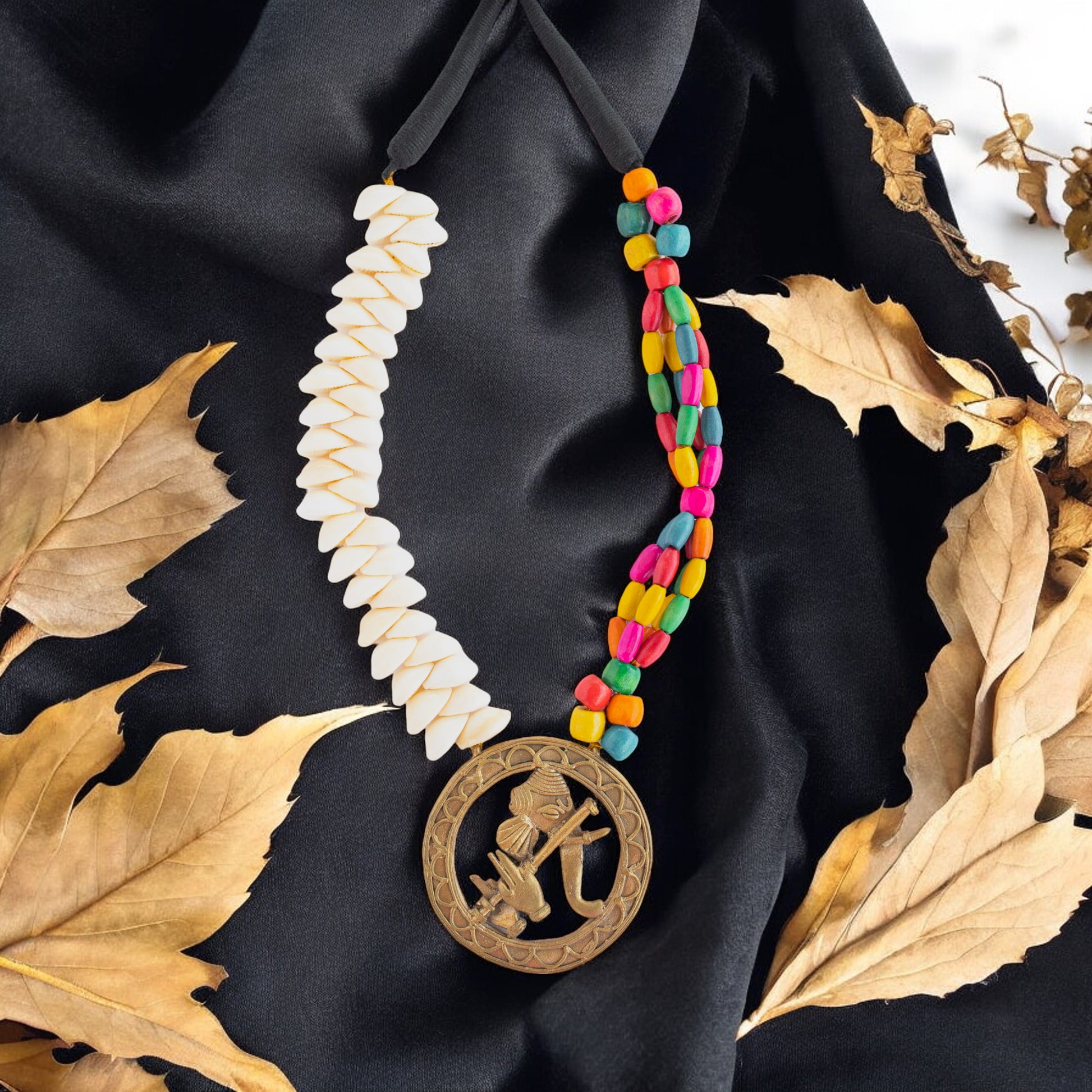Discover the unique beauty of our Dhokra Art Brass Metal Jewellery Set for Women. Adorned with Ganesh, multicolor wooden beads, and kori, this set is a perfect combination of tradition and style. Handcrafted by skilled artisans, each piece is one-of-a-kind. Elevate your look with this stunning and meaningful set.