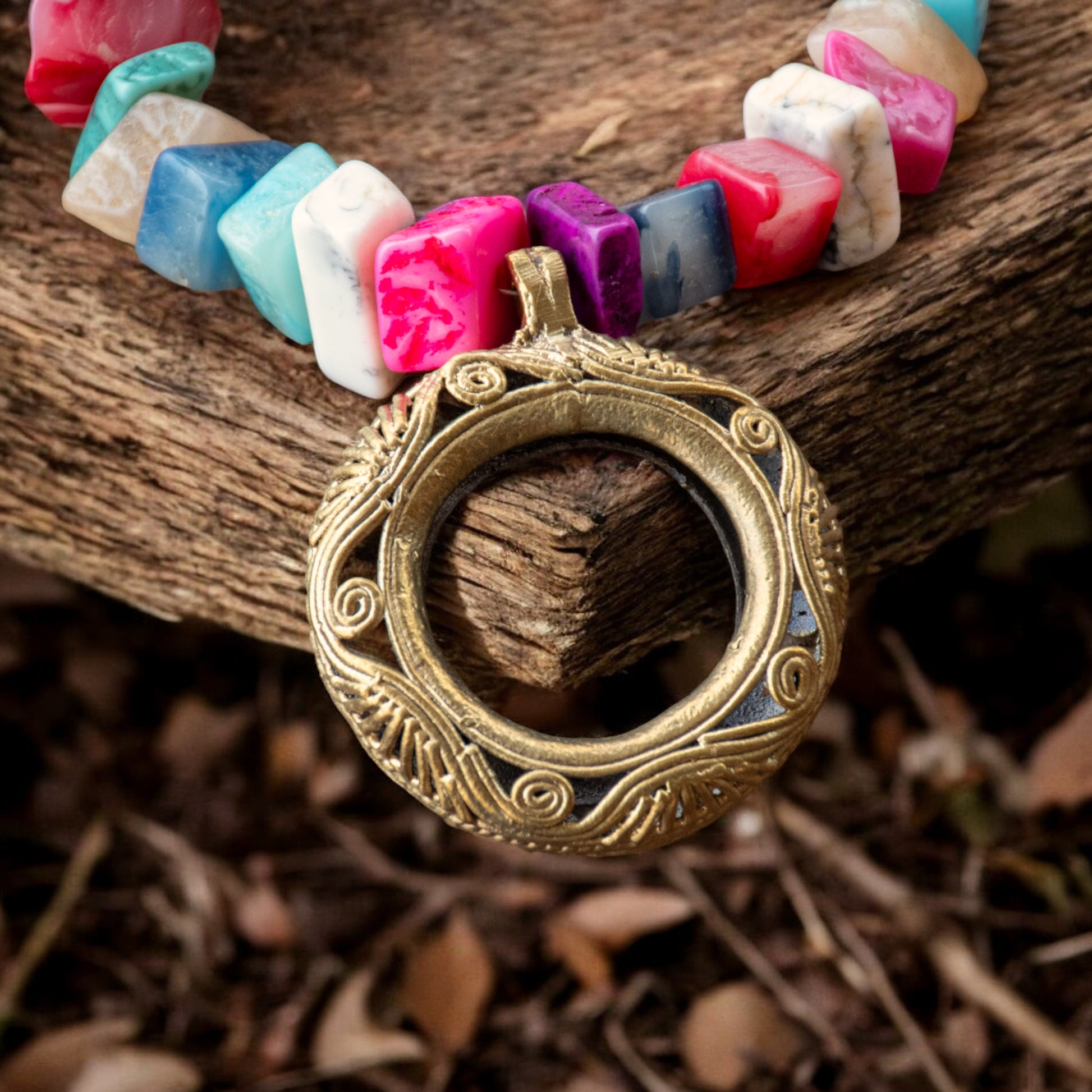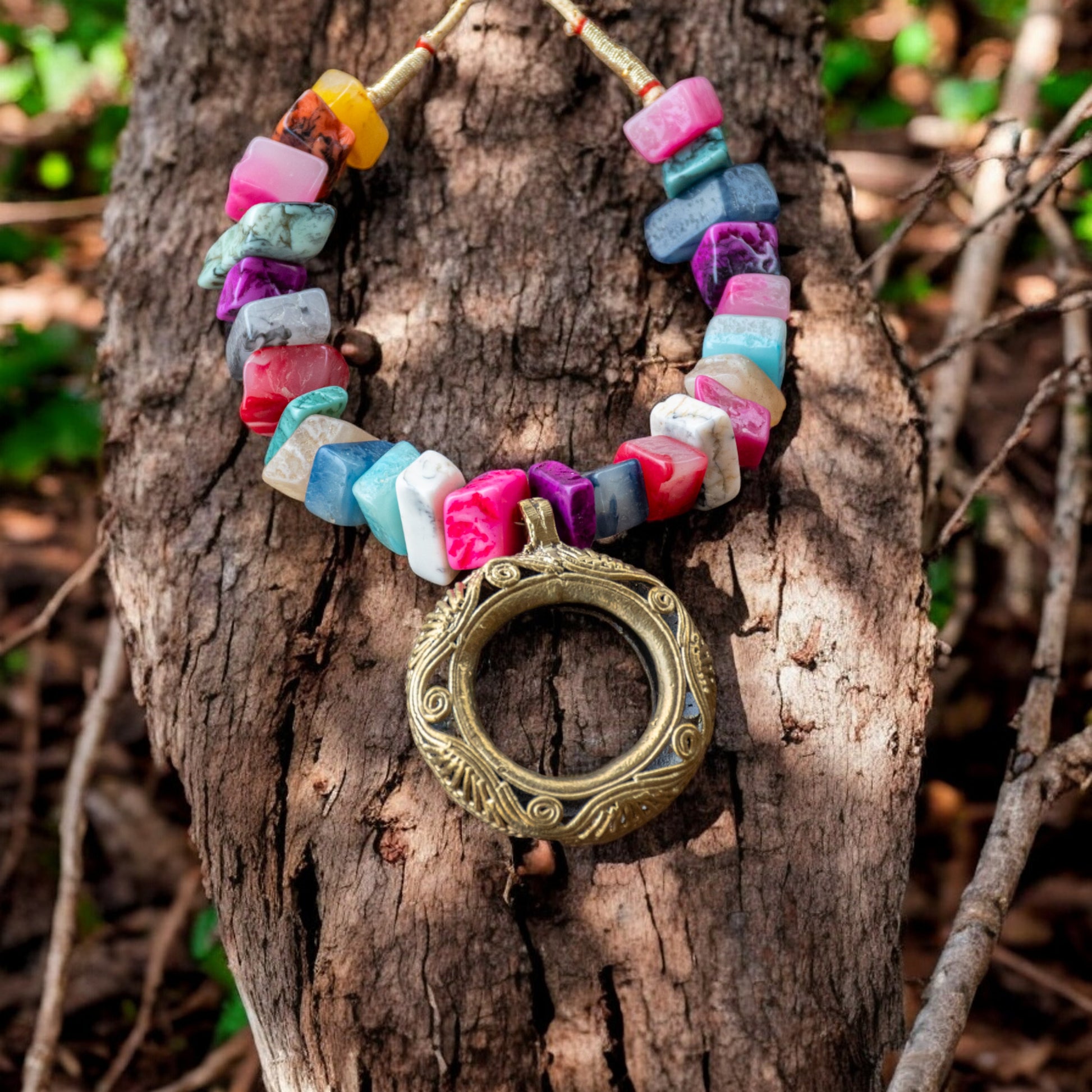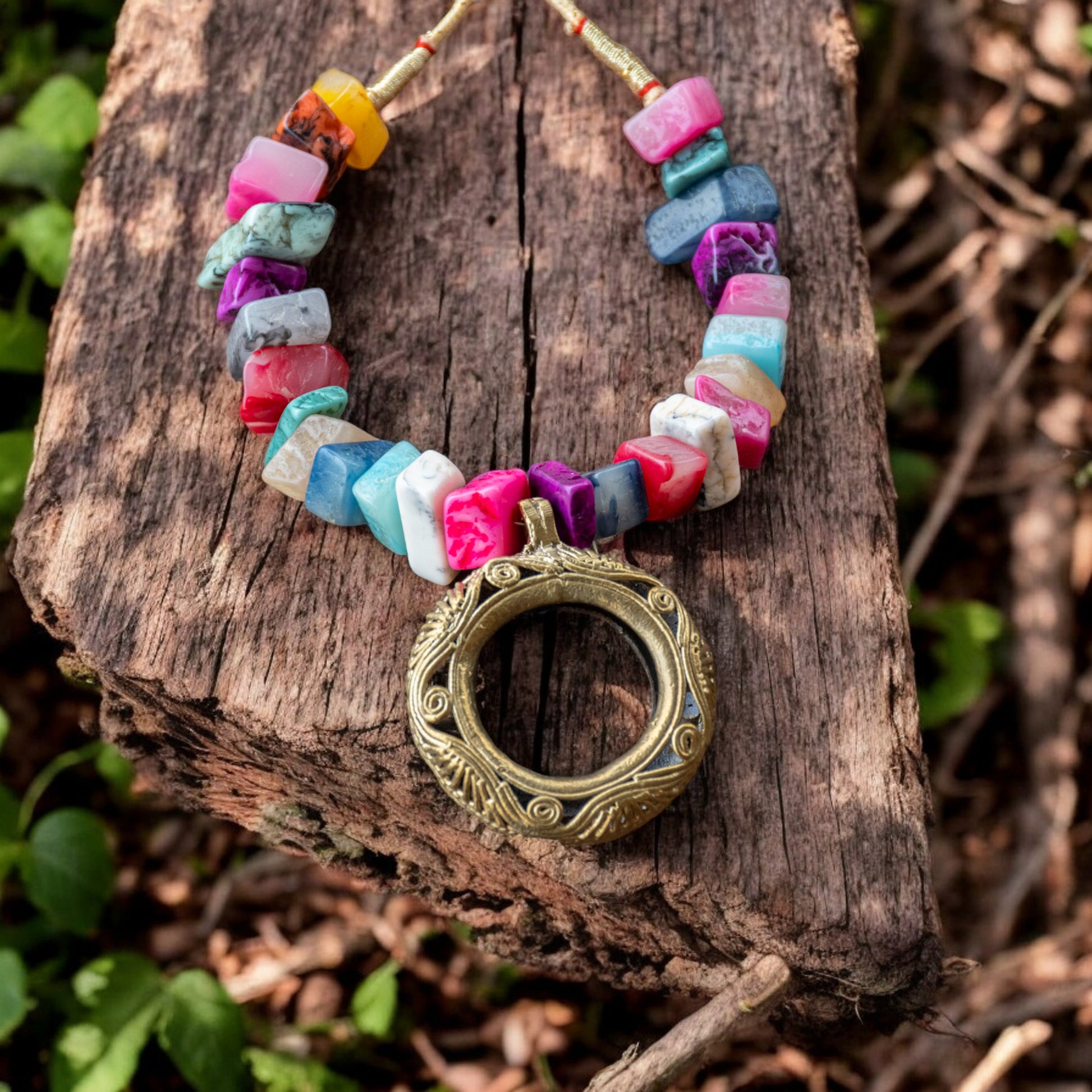 Expertly crafted with traditional Dhokra art techniques, this brass metal jewellery piece is a stunning addition to any collection. Adorned with vibrant multicolor beads, it adds a touch of culture and artistry to any outfit. Perfect for the confident and fashion-forward woman.