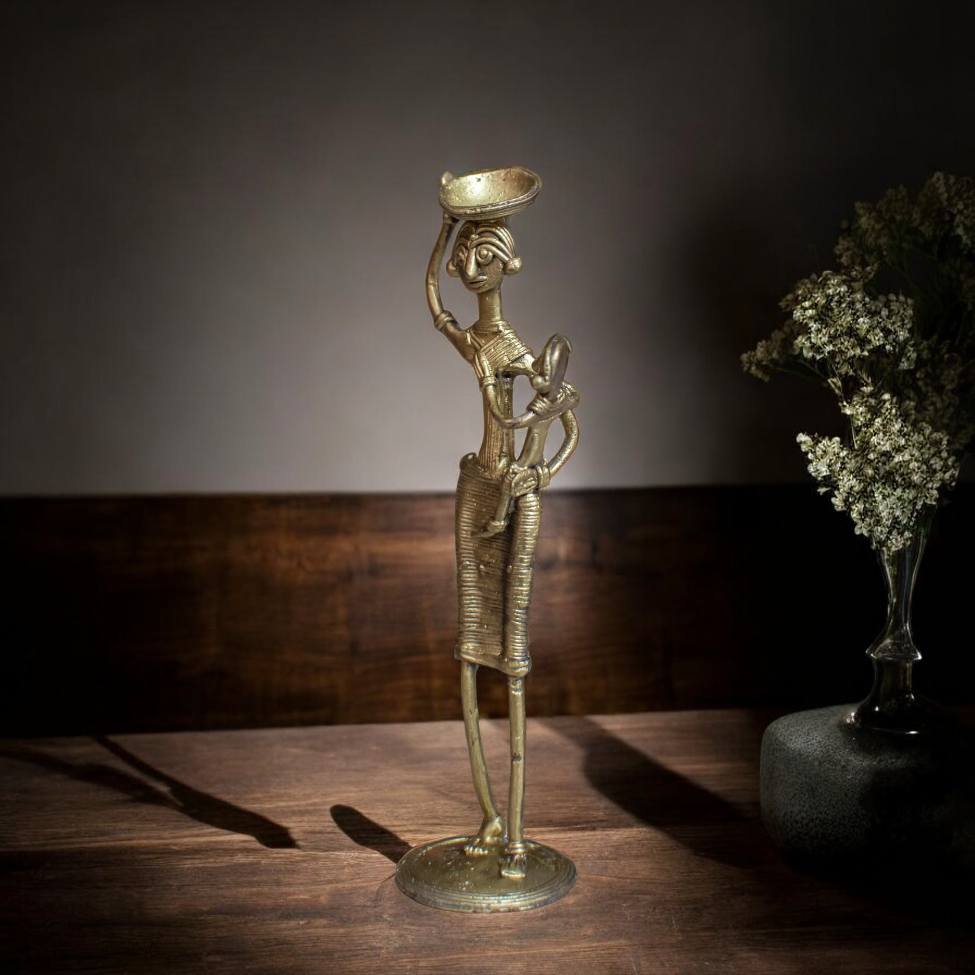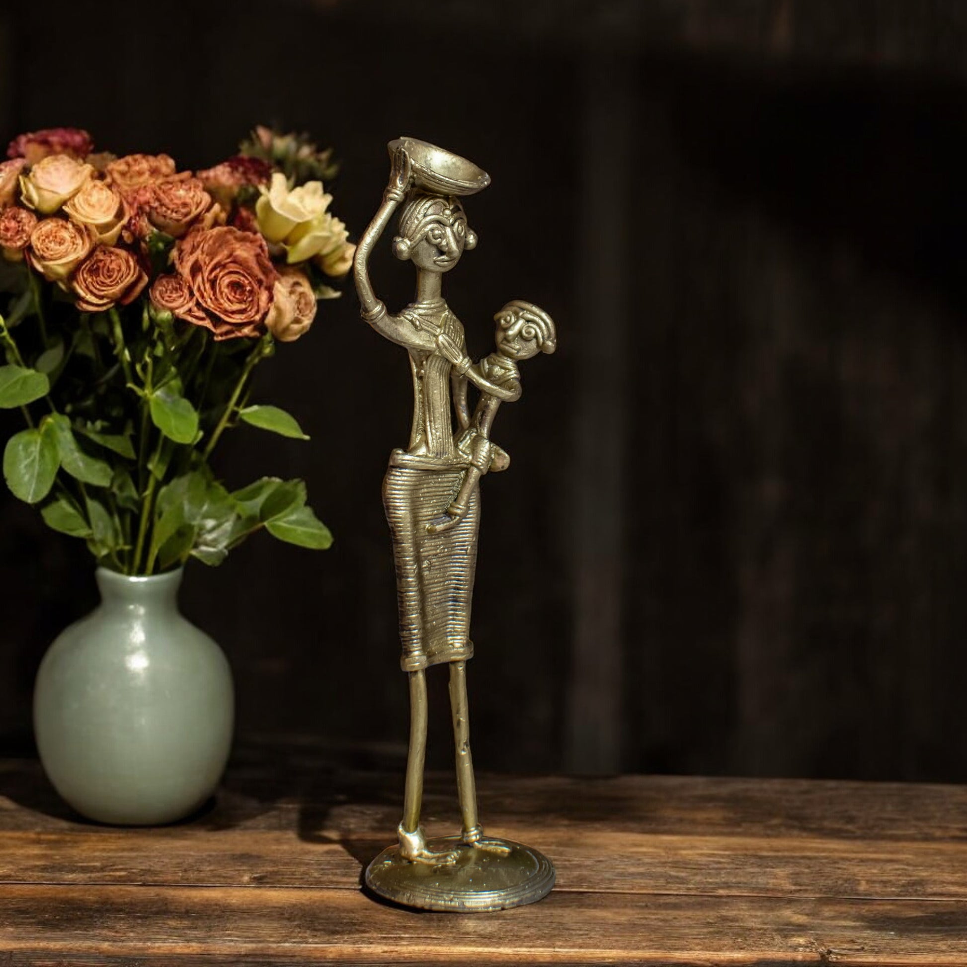 Dhokra Art Brass Metal Woman with Baby and Basket for Home Decor || D89