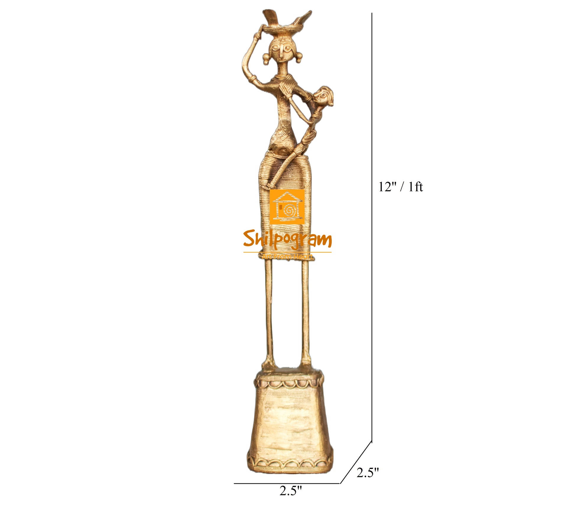 Dhokra Art Brass Metal Woman with Baby and Fish Basket for Home Decor || D92