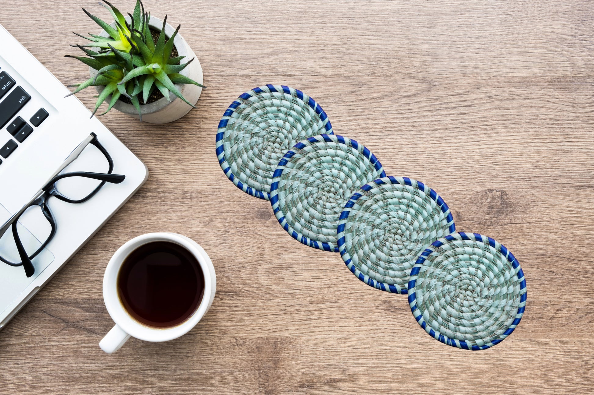 Handmade Sabai Grass Coasters (Set of 4) || Diameter 4"