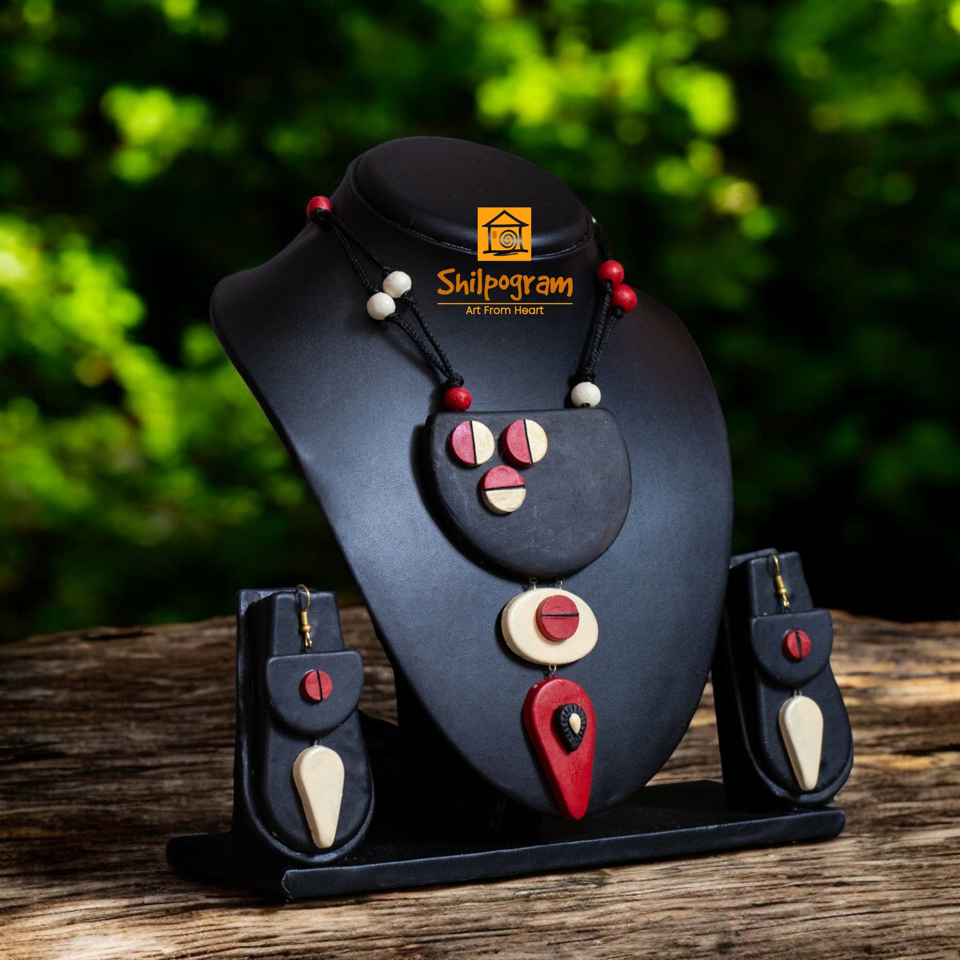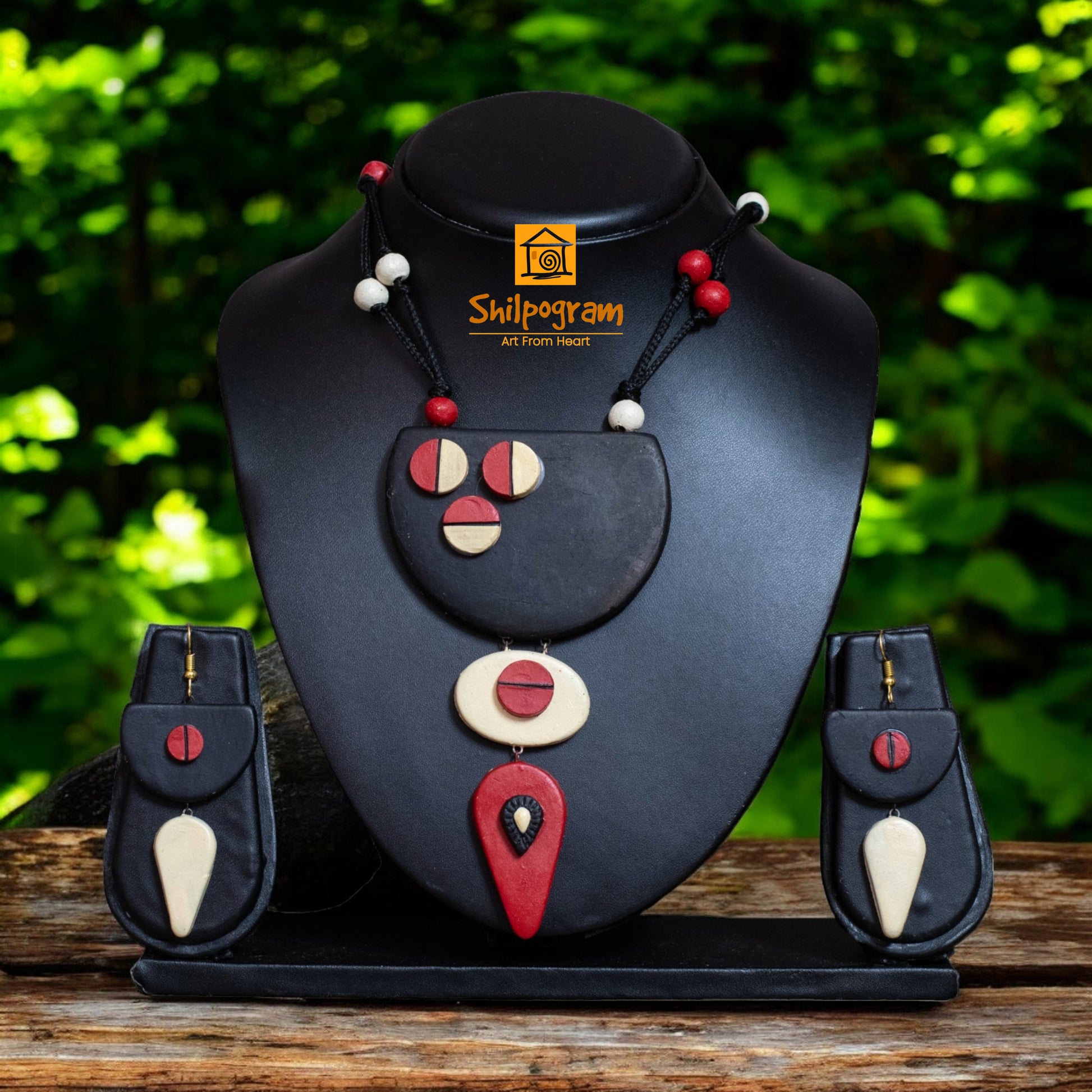 - SHILPOGRAM terracotta jewellery item has beautiful curve features in its design.